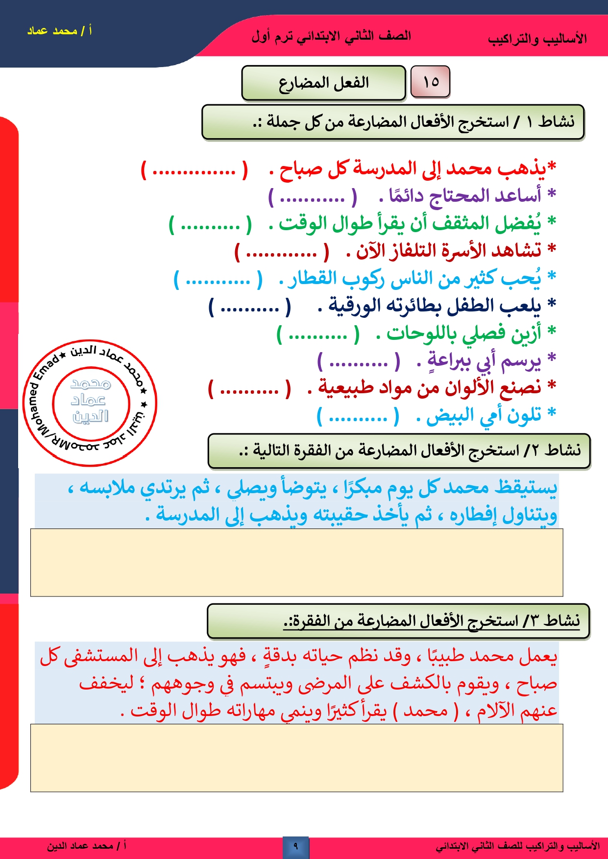 نصب الفعل المضارع للصف السادس