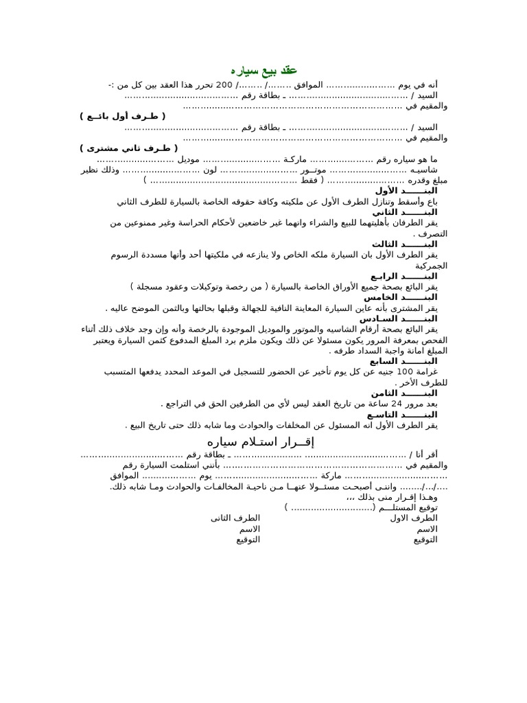اقرار استلام سيارة بيع نموذج اقرار استلام سيارة مستعملة